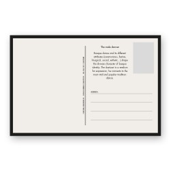 Souvenir Postcard of “Dantzari Mutila” (the male dancer) silhouette printed on 300gr canvas colored paper, size 100 x 150 mm. French version of the explicative text for the silhouette can be found on the backside.