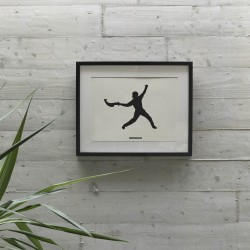 Decorative sports scene print with "Jai Alai 01" silhouette on 300gr canvas colored paper, size 400 x 300 mm.