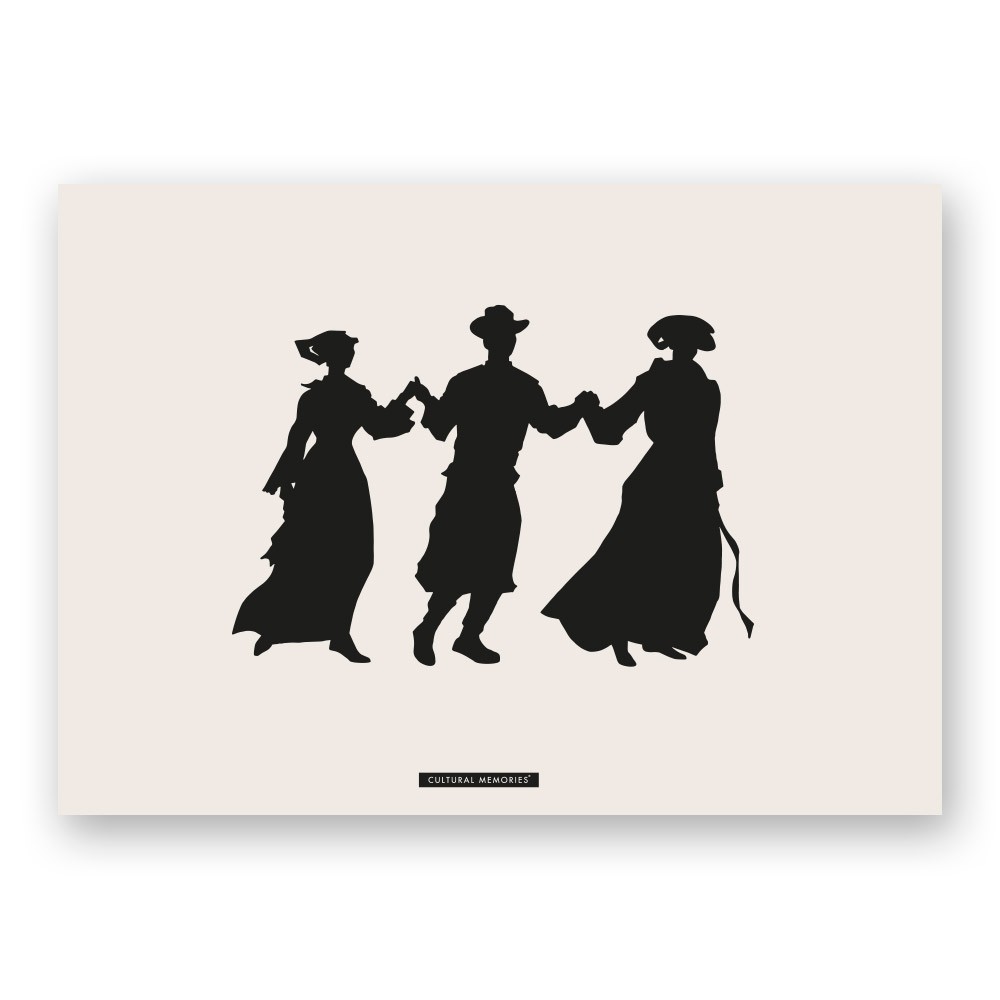Lámina souvenir con silueta “Bailarines” en papel de 300gr color crudo, tamaño 400 x 300 mm.
