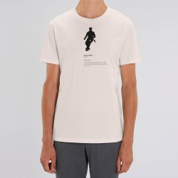 Camiseta 100% algodón orgánico de alto gramaje (180 g/m2) en color crudo, serigrafiada con silueta motivo “Pelotari” (jugador de pelota vasca) y texto explicativo en inglés.