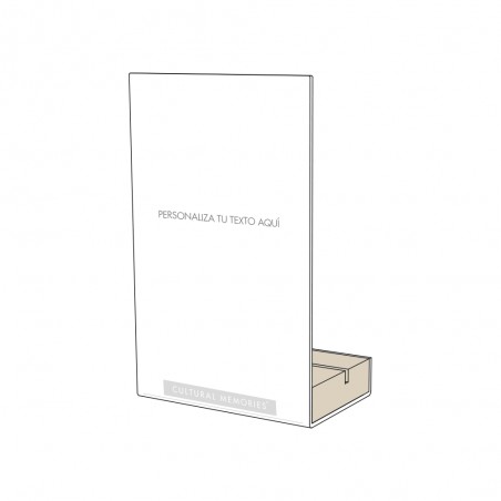 Pero también tienes la posibilidad de personalizar tu figura con tus propios textos (en este caso va sin imagen de la silueta en la parte trasera), combinar el texto original y el tuyo, e incluso recibirla sin texto alguno. Dale al + si quieres saber dónde aparecerán tus textos.