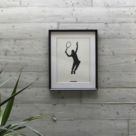 Affiche décoratif de scène sportive avec silhouette "Tennis 04" en papier de 300gr couleur écrue, format 300 x 400mm.